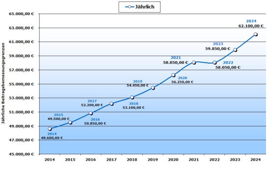 Beitragsbemessungsgrenzen KV/Pflege von 2014 - 2024
